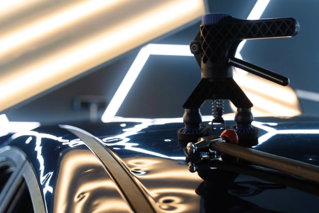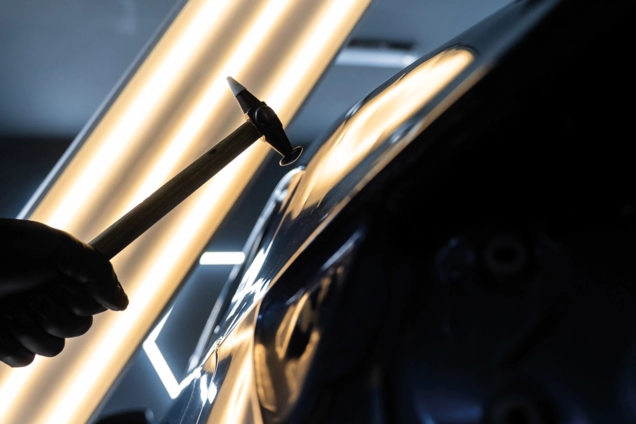 Bei der Reparatur von Hagelschäden ziehen und drücken die Garage plus- und Carrosserie plus-Werkstätten die Dellen in der Karosserie vorsichtig heraus, ohne den Lack zu beschädigen. Diese Technik, mit der die Karosserie ohne Spachteln oder Neulackieren repariert werden kann, bietet zwei wesentliche Vorteile: Zeitersparnis und eine erhebliche Reduzierung der Reparaturkosten.
