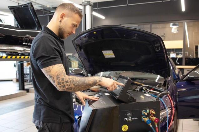 Die Garage plus- und Carrosserie plus-Werkstätten führen verschiedene Wartungsarbeiten an der Klimaanlage durch:
