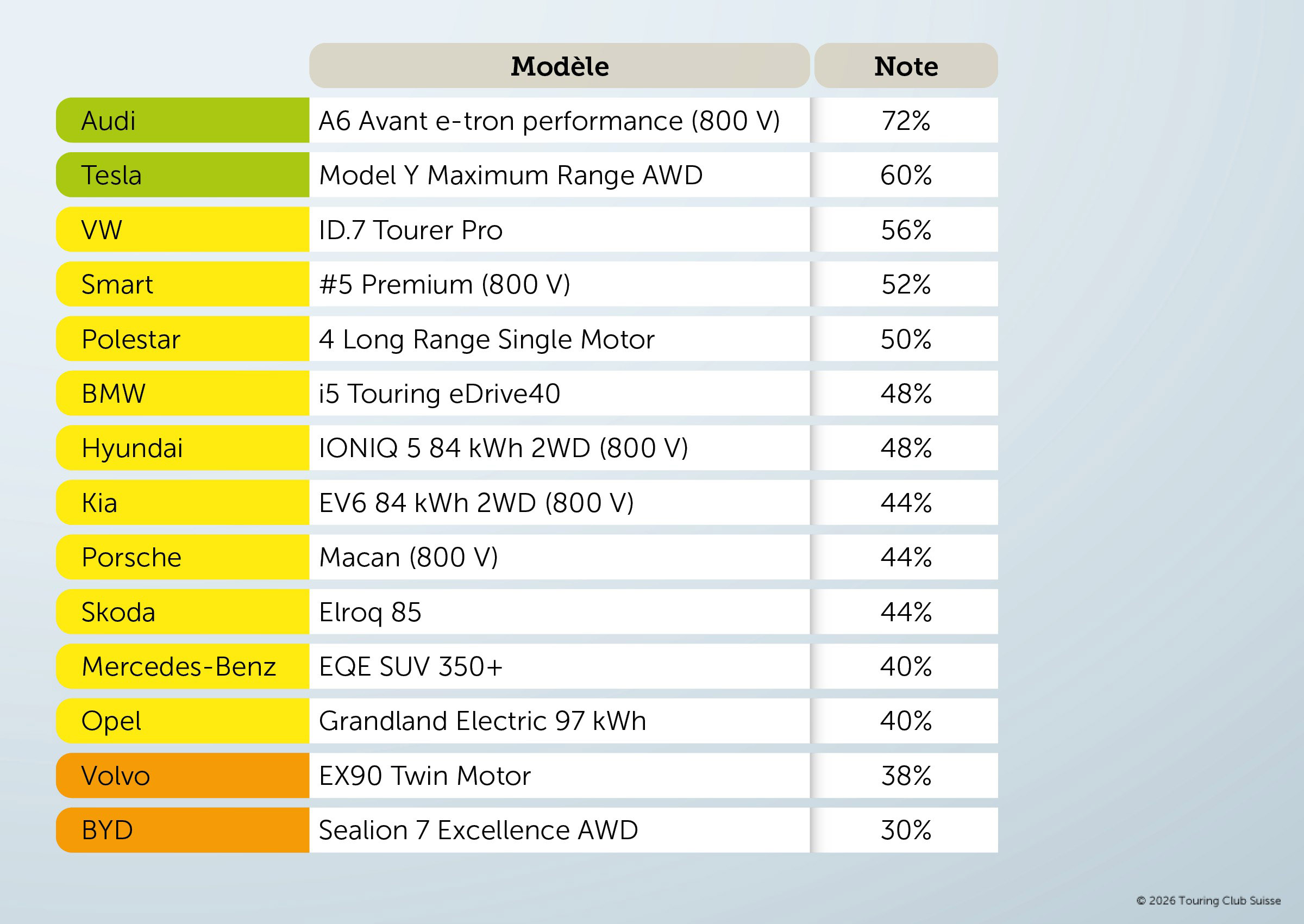 Le comparatif souligne enfin que les meilleurs résultats en hiver ne sont pas automatiquement liés au positionnement d’un véhicule. Plusieurs modèles figurant dans le haut du classement combinent une consommation maîtrisée et une recharge efficace, alors que d’autres véhicules plus grands et plus lourds se retrouvent pénalisés par une efficience insuffisante, malgré une batterie de capacité importante.